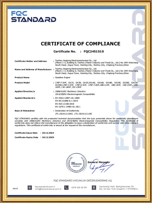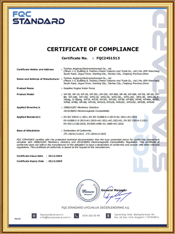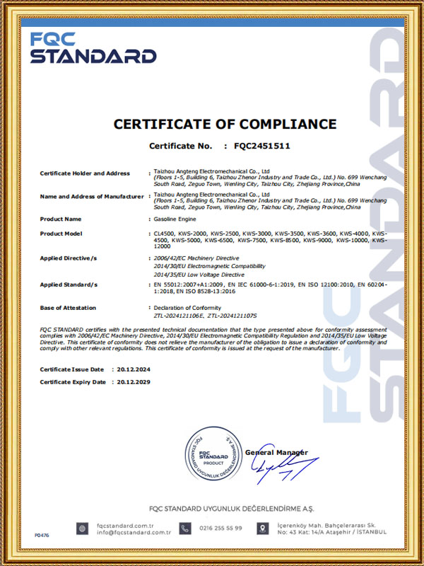 ZHEJIANG TAIZHOU ANGTENG ELECTROMECHANICAL CO., LTD. مسجلة في مقاطعة لوقياو، مدينة تايچو، مقاطعة झيجيانغ (الصين). تم إنشاؤها منذ أكثر من 7 سنوات. هي شركة متخصصة في تطوير وإنتاج وبيع محركات البنزين والديزل، ومجموعات التوليد الكهربائي، والمضخات المائية، وأجهزة التنظيف عالية الضغط. توجد الشركة في شارع تشانغبو، مقاطعة لوقياو، مدينة تايچو، على ساحل بحر الصين الشرقية. تُجاور الطريق الوطني 104 من الغرب، ومحور الشارع السريع شانغهاي-نينغبو-هانغتشو من الشمال، ومرفأ هايمينغ من الشرق، كما توجد قرب مطار لوقياو.